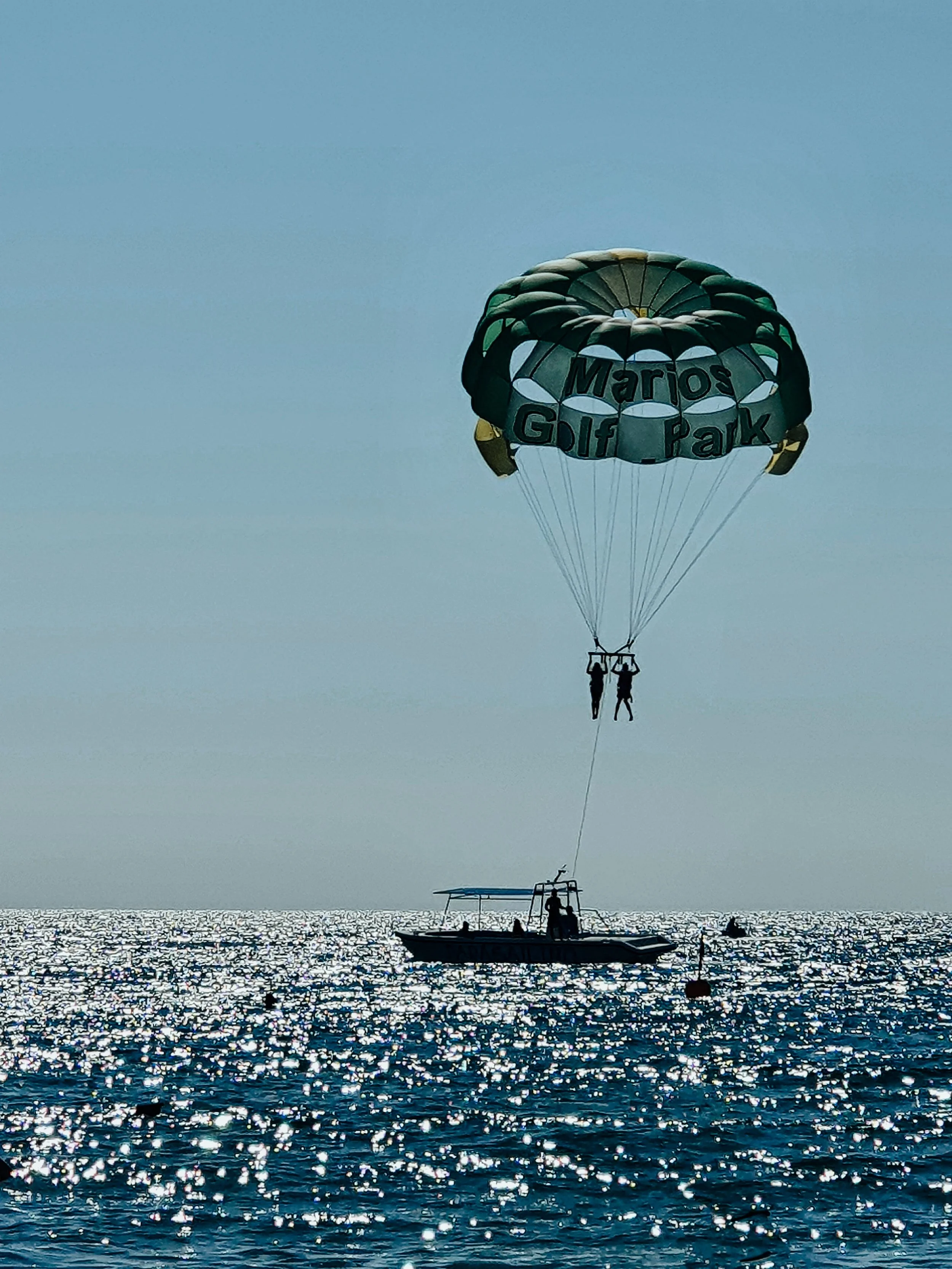 El parasailing te elevará por encima del mar mientras estás sujeto a un paracaídas remolcado por una lancha rápida, brindándote vistas panorámicas impresionantes de la costa y una increíble sensación de libertad.